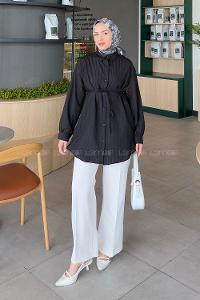 Lamelif İp Bağlamalı Crashlı Tesettür Gömlek Siyah