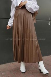 Lamelif Önü Pileli Scuba Kumaş Etek Kahverengi