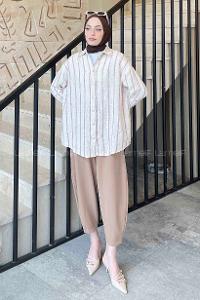 Lamelif Kalın Çizgi Detaylı Gömlek