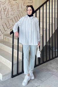 Lamelif Kalın Çizgi Detaylı Gömlek