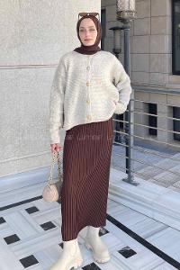 Lamelif Cep Detaylı Tesettür Hırka Bej