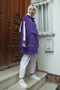 Modalamelif Kanguru Cepli Oversize Sweatshırt Mor