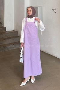 Lamelif Kanguru Cepli Tesettür Elbise Lila