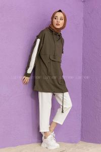 Modalamelif Kanguru Cepli Yaka Fermuarlı Corona Sweat Haki