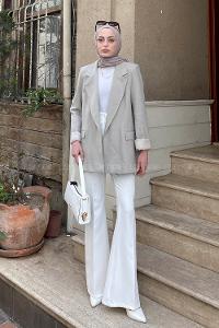 Lamelif Kapak Cep Detay Keten Ceket Kum Beji