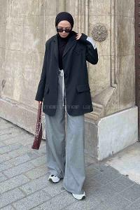 Lamelif Fermuarlı Kaşe Ceket Siyah