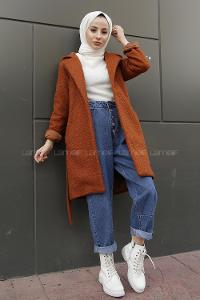 Lamelif Zikzak Desen Balık Sırtı Kaban Kahverengi