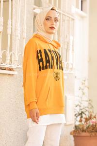 Modalamelif Kapşonlu Harward Yazı Baskılı Sweat Hardal Sarısı