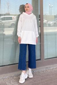 Modalamelif Kapşonlu Kanguru Cep Sweat Beyaz