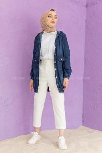 kapşonlu gömlek yaka, boydan düğme detaylı, mükemmel kalıp, kot ceket.