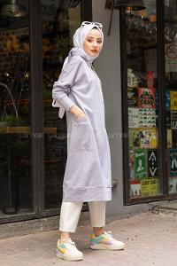 Modalamelif Kapşonlu Uzun Cep Detaylı Sweatshirt Lila