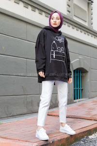 Lamelif İki iplikli Arma Detaylı Sweat Tunik Siyah