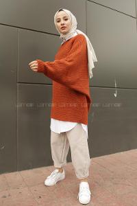 Modalamelif Kayık Yaka Yarasa Kol Detaylı Kazak Kiremit