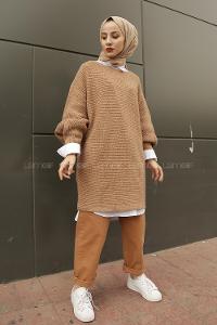 Modalamelif Kayık Yaka Yarasa Kol Detaylı Kazak Sütlü Kahve