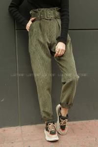 Modalamelif Kemerli Aerobin Kadife Pantolon Haki