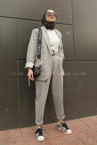 Modalamelif Kemerli Ceket İkili Takım Açık Gri