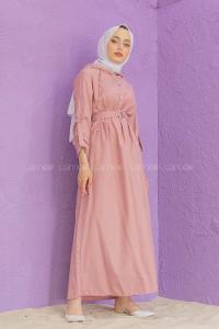 Modalamelif Kemerli Kuşaklı Elbise Pudra