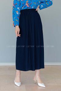 Lamelif Cep Detaylı Kloş Keten Etek Lacivert