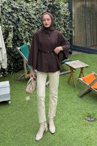 Lamelif Kürk Yaka Panço Sütlü Kahve