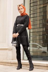 Modalamelif Kemerli  Raşel Tunik Siyah