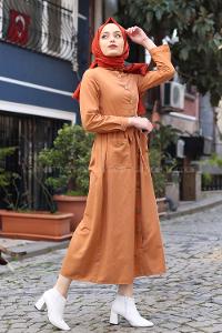 Lamelif Elica Tesettür Elbise Taş Rengi