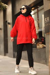 Lamelif Karpuz Kol Sweatshirt Kırmızı