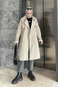 Modalamelif Reglan Kol Düğmeli Trenç Krem