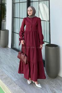 Lamelif Düğme Kapama Tesettür Elbise Bordo