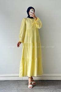 Lamelif Kol Bağlama Detaylı Tesettür Elbise Sarı