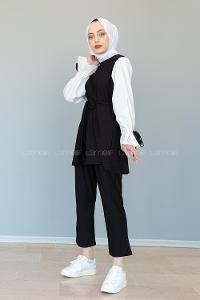 Lamelif Düz Bisiklet Yaka Takım Siyah