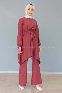 Lamelif Düz Bisiklet Yaka Takım Koyu Vizonrengi