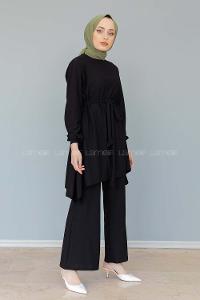 Lamelif Düz Bisiklet Yaka Takım Siyah