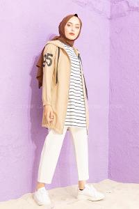Lamelif Cep Detaylı Tesettür Hırka Bej