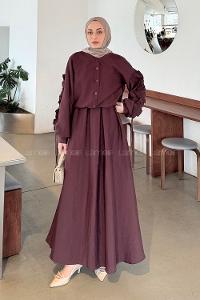 Lamelif Süet Etekli Tesettür Takım Mürdüm