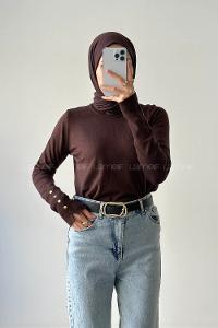 Lamelif Kol Drop Detaylı Kazak Acı Kahve