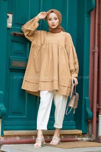 Lamelif Lopez Balon Kol Tunik Sütlü Kahve