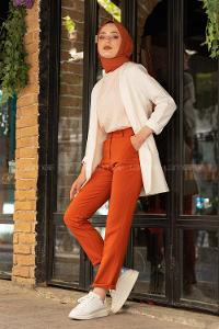 Lamelif Dekoratif Cep Detaylı Tesettür Ceket Acı Kahve