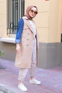 Modalamelif Kol Kot Detaylı Belden Bağlamalı Trenç Bej