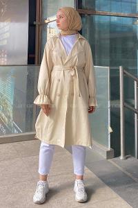 Lamelif Kol Lastikli Belden Bağlamalı Trenç Taş