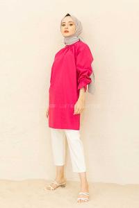 Modalamelif kli Hakim Yaka Tunik Fuşya