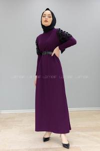 Modalamelif Kol Tül Puanlı Kemerli Elbise Mürdüm