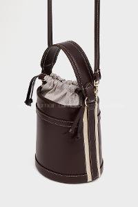 Lamelif Kova model Kontrast Dikişli Büzgülü Kapatma El ve Omuz Çanta Acı Kahve