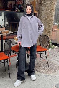 Lamelif Kraşlı Gömlek Gri