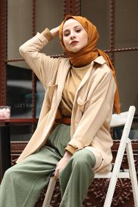 Lamelif Kol Tünel İp Detaylı Gömlek Acı Kahve