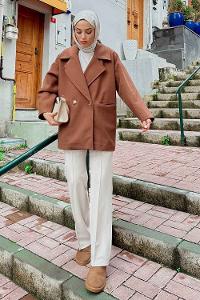 Modalamelif Kruvaze Yaka Kısa Kaşe Kaban