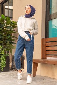 Modalamelif Kuş Gözlü Kapşonlu Swatshirt Gri