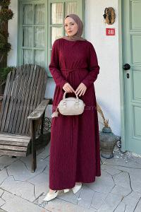 Lamelif Biritli Tesettür Elbise Mürdüm