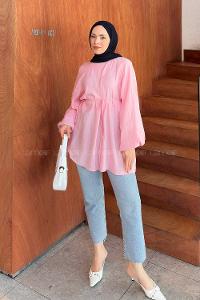Lamelif Lopez Balon Kol Tunik Şeker Pembesi