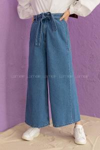 Modalamelif Kuşaklı Bol Paça Pantolon Kot Mavisi