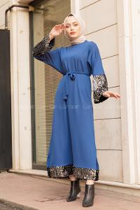 Modalamelif Kuşaklı Pul Payet Elbise İndigo